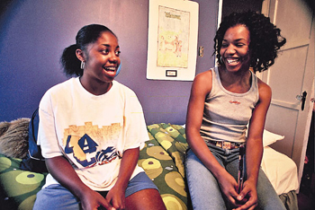 Kristian (right) chats with her friend Bianca Carson, 16, in Kristian’s bedroom, where they like to hang out when they’re not too busy.